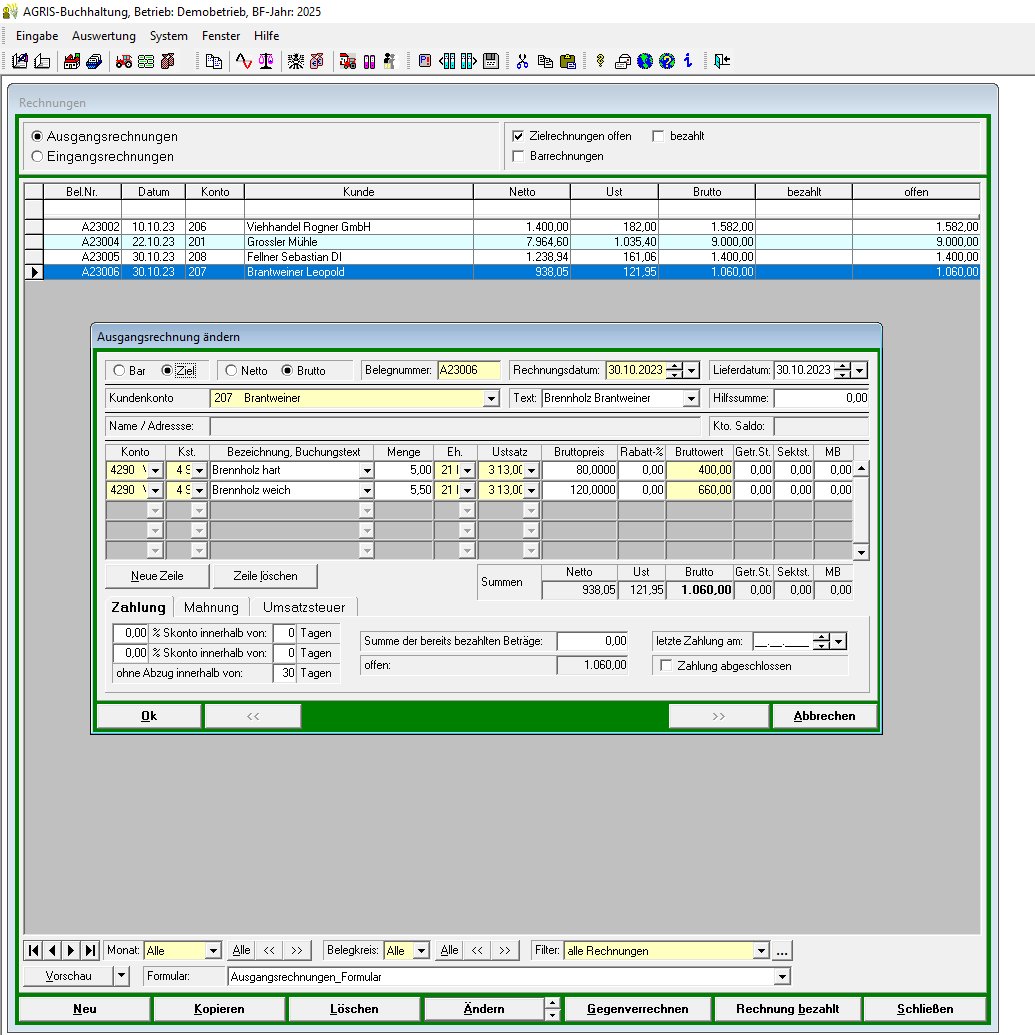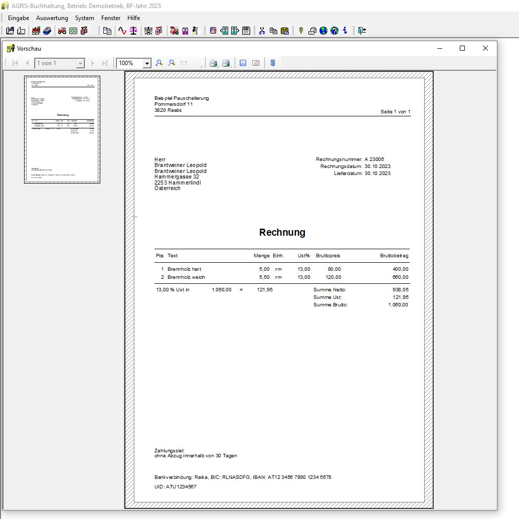 In der AGRIS Buchhaltung ist neben der Kunden- und Lieferantenverwaltung der Funktionsumfang zur Erstellung von Eingangs- und Ausgangsrechnungen mit OP-Verwaltung und automatischem Mahnwesen integriert. Mit dem mitgelieferten Formulardesigner können Sie das Layout Ihrer Rechnungen an Ihre Wünsche anpassen..