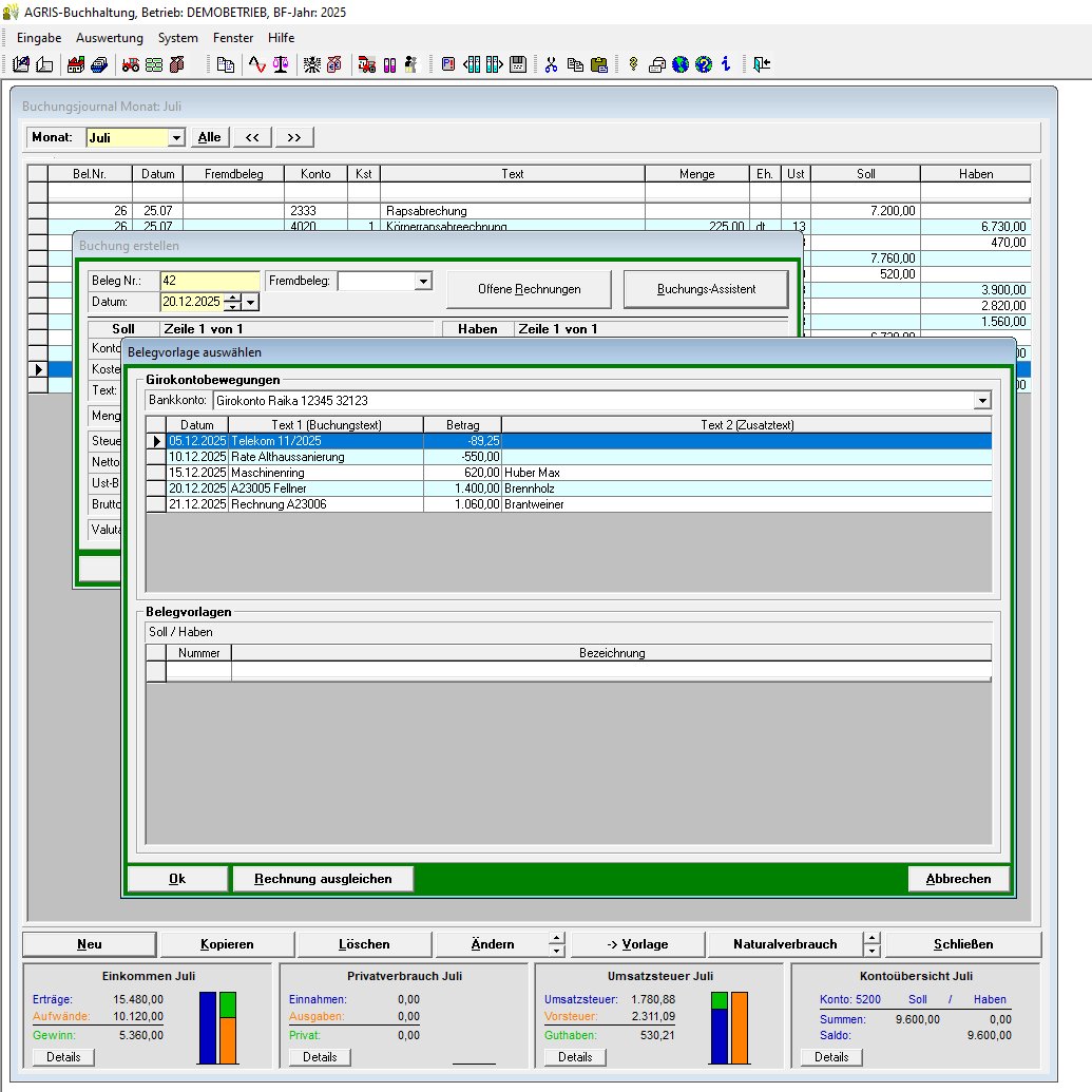 • Buchungs-Assistent mit Belegvorlagen, offenen Rechnungen, und Girokontobewegungen
