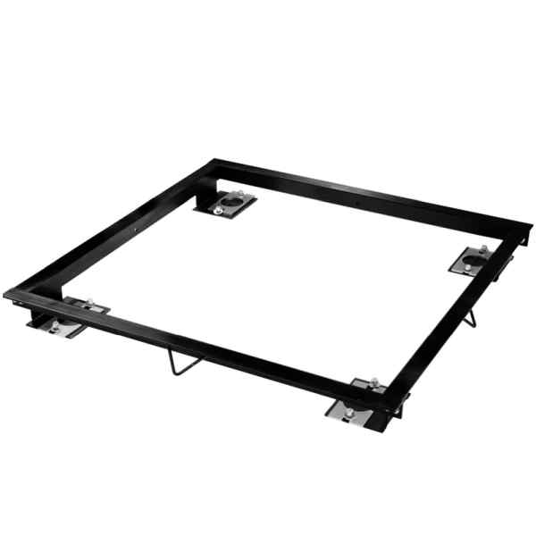 Der Rahmen wird ebenerdig einbetoniert. Die Plattform wird mit den Standfüßen auf die verschiebbaren und fixierbaren Aufstandsplatten gestellt. Sie erhalten eine Waage ohne Niveauunterschiede.