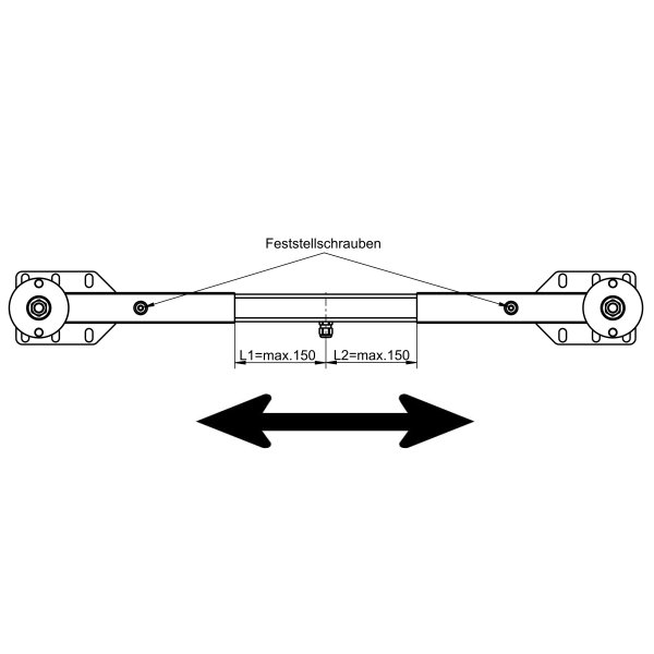 • Balkenlänge Außenmaß verstellbar zwischen 743 und 1.043 mm