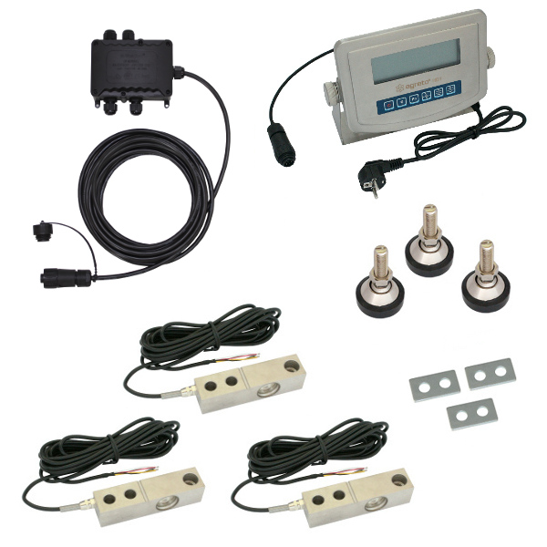The AGRETO Scales kit with shear beam load cells can be used for any scale constructions. They are ideal for animal scales, for all kinds of platforms, for installation in machines such as fertilizer spreaders, seeders, wrappers, balers, forage mixers, trailers, etc. and also for mobile scale constructions.